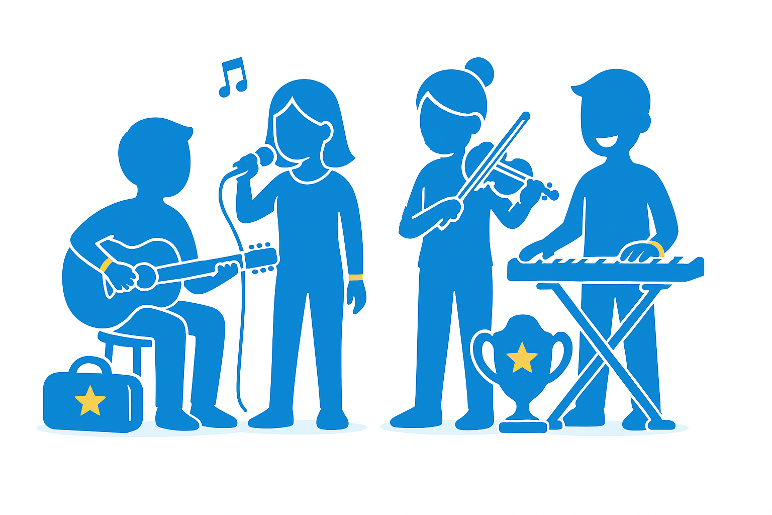 Our Achievement Awards Program motivates students to grow, step by step. Earn points for daily practice, recitals and group classes, memorization, and other musical milestones. Log your points in our app, track your level, and see your standing on the studio leaderboard. Earn a colored wrist band for each level you achieve—and keep the music moving forward!